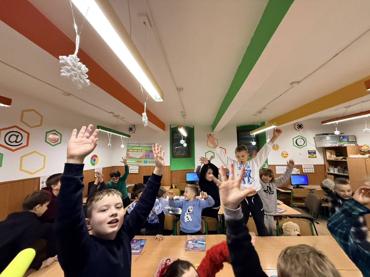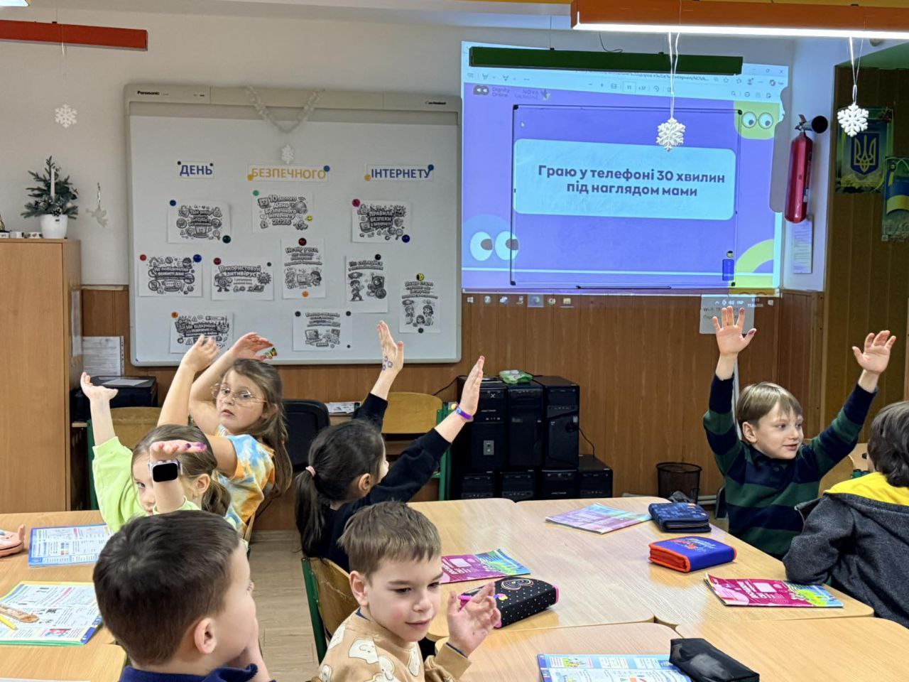 Четвертокласники прийшли до учнів першого класу, щоб розповісти, як правильно користуватися ґаджетами і розумно поводитися у мережі. Разом пограли у “світлофор”! Було цікаво і весело!